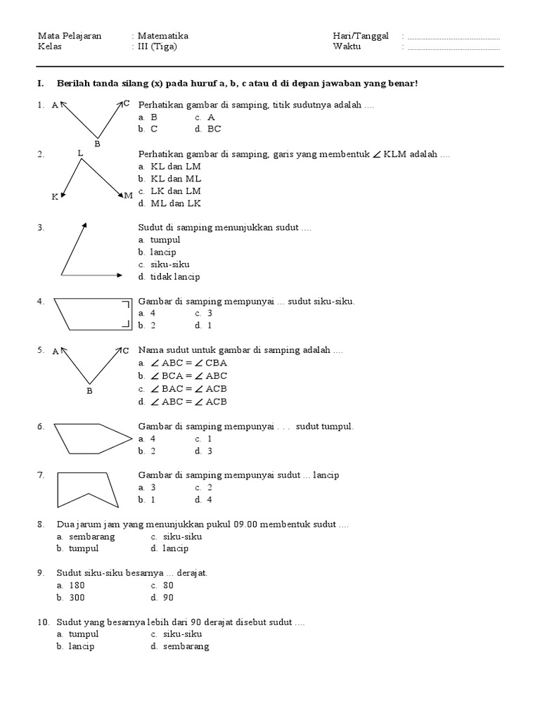Sekarang, mari kita mulai latihan soal agar pemahaman kita semakin kuat! Latihan ini akan membantu kalian mengidentifikasi jenis sudut, mengukur, dan memecahkan masalah sederhana.